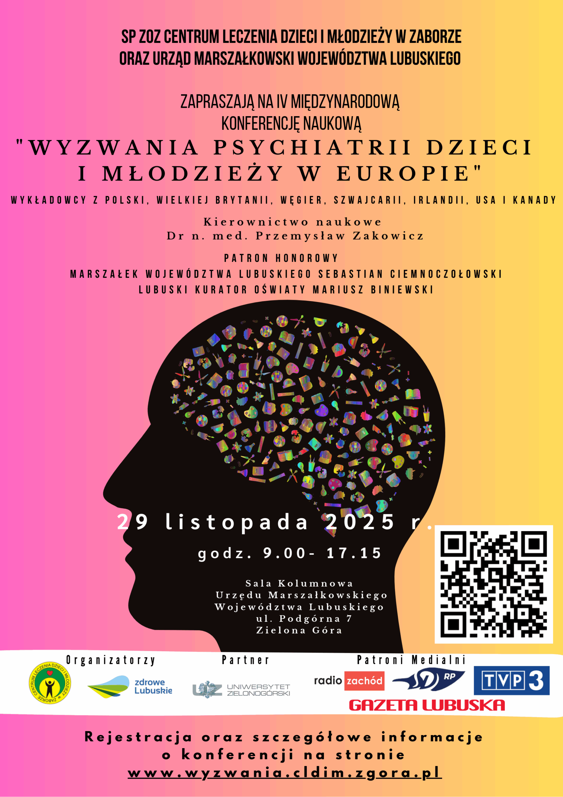 W imieniu Centrum Leczenia Dzieci i Młodzieży w Zaborze oraz Urzędu Marszałkowskiego Województwa Lubuskiego, zapraszamy do udziału w czwartej już, międzynarodowej konferencji naukowej pt. „Wyzwania psychiatrii dzieci i młodzieży w Europie”.